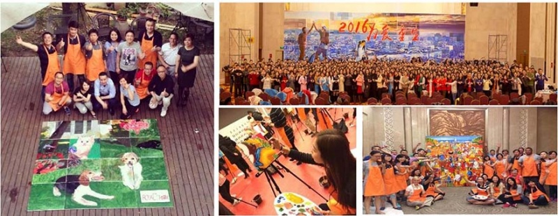 通过团队的努力完成一幅具有D体育(中国)文化代表意义的油画,用视觉的感观直接呈现在面前,提升D体育(中国)员工的D体育(中国)归宿感,同时,在前期制作过程中,团队成员的相互协作,增进团队成员间的凝聚力.参与者要用画笔和颜料,挥洒艺术才能,绘出史诗般的巨幅画作。