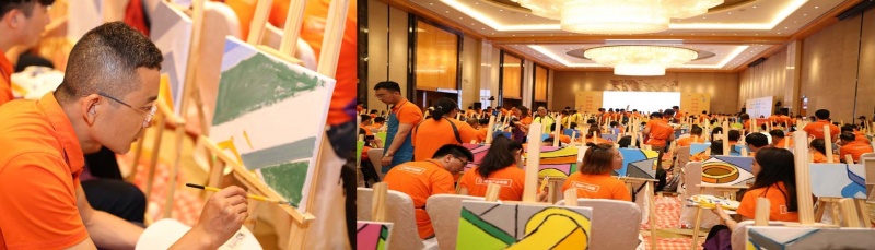 油画团建,既需要你全心的完成属于你自己的那一份,也需要你与旁边的人产生联接,去共同完成整体的震撼挑战。